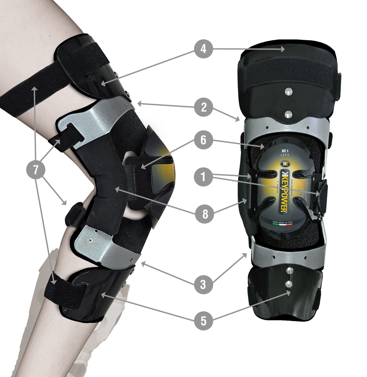 IL CONCETTO SU MISURA XC1. LA STRUTTURA DEVE CALZARE ED AVVOLGERE AL MEGLIO SIA LA PARTE CENTRALE DEL GINOCCHIO CHE QUELLA DEGLI ARTI. NON SI SOSTIENE O SI PROTEGGE L’ARTICOLAZIONE COMPRIMENDO LATERALMENTE IL GINOCCHIO. LA SI PROTEGGE CON DIVERSI FATTORI; CON IL CORRETTO POSIZIONAMENTO DELLO SNODO ARTICOLARE SUL CENTRO DEL GINOCCHIO, NEL CORRETTO POSIZIONAMENTO LATERALE, NEL GIUSTO POSIZIONAMENTO SUGLI ARTI, CON IL BRACCIO DI LEVA CHE AGISCE SU FEMORE E TIBIA. MAGGIORE È LA PRECISIONE DI QUESTI FATTORI, PIÙ SI AVRÀ LA POSSIBILITÀ DI PROTEGGERE L’ARTICOLAZIONE QUANDO LE SOLLECITAZIONI E GLI URTI DISTORSIVI VANNO OLTRE I NATURALI LIMITI DEL CORPO.