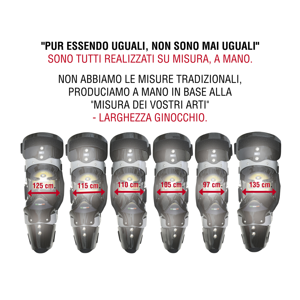 -POSIZIONAMENTO SNODO SUI LATI GINOCCHIO LA COSTRUZIONE MANUALE SU MISURA PERMETTE di avere un preciso spazio di materiali soft di 6/7 mm. tra ginocchio e struttura. Larghezze ginocchio da 90 a 105 mm. per i ragazzi e da 105 a 125 mm. per gli adulti. Consegna in 5/10 giorni lavorativi. Da 127 a 135 mm. entro 30 giorni lavorativi, oltre i 136 mm. da consuntivo.